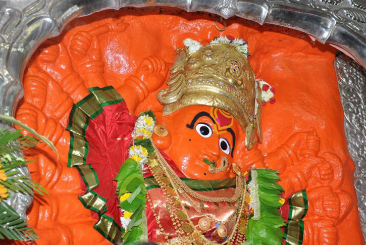 According to Hindu traditions, the goddess Saptashrungi Nivasini dwells within the seven mountain peaks. (Sapta means seven and shrung means peaks.) It is located in Nanduri, Kalwan taluka, a small village near Nashik in India. Devotees visit this place in large numbers every day. The temple is also known popularly as one of the "three and half Shakti Peethas" of Maharashtra. The temple is also one among the 51 Shakti Peethas located on the Indian subcontinent and is a location where one of Sati's (first wife of Lord Shiva) limbs, her right arm is reported to have fallen. Its half shaktipeeth among three and half shaktipeeth of Maharashtra.